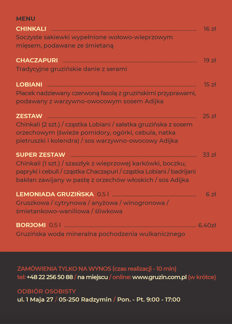 Specjalizujemy się w daniach tradycyjnej kuchni gruzińskiej. Wszystkie potrawy powstają według oryginalnych receptur, przygotowywane zawsze ze świeżych, najwyższej jakości składników.